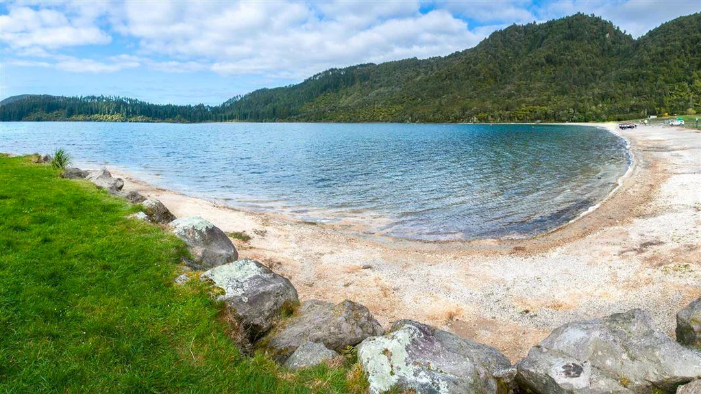 This easy track circumnavigates the lake, beginning at the northern end and traversing a secluded beach at the south end before heading back through the exotic conifers of the Whakarewarewa Forest to the head of the lake.