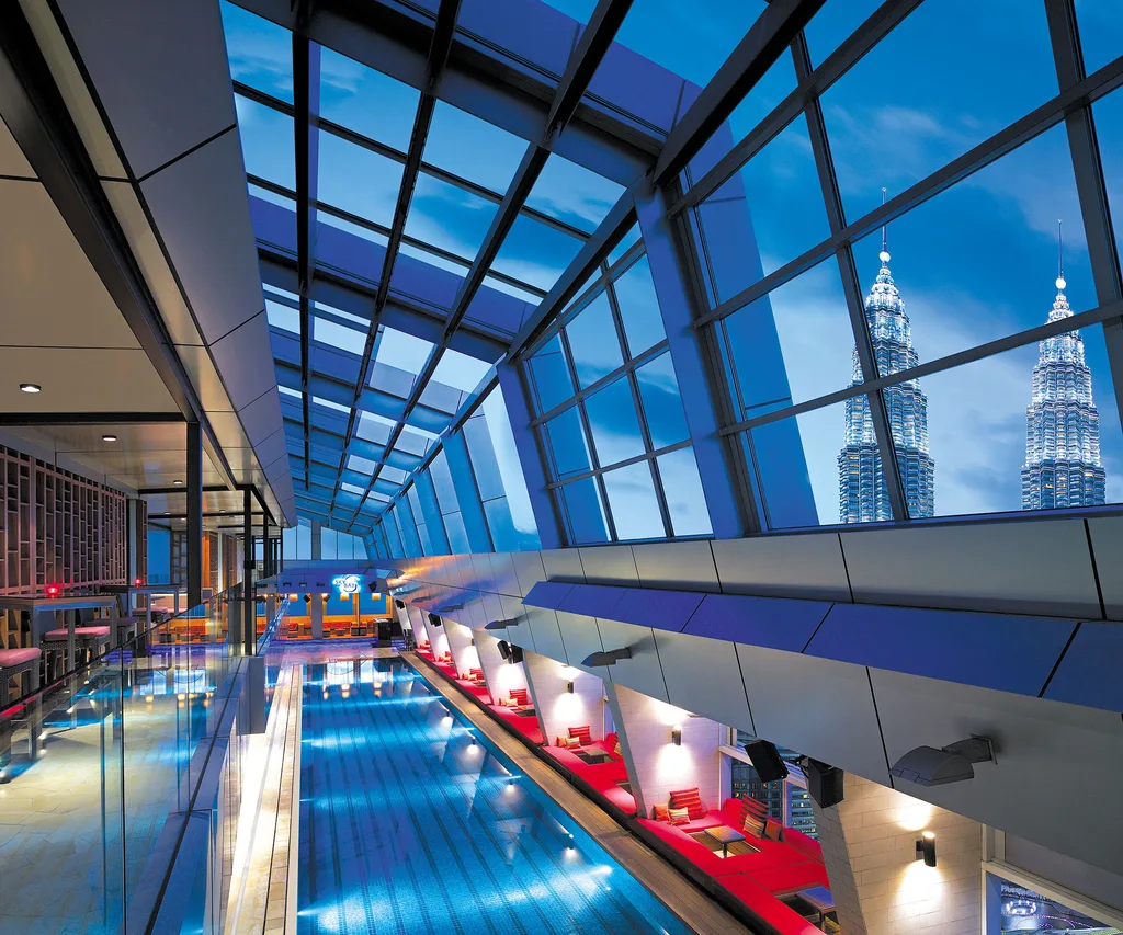 As darkness falls, neon lanterns catch my eye and as I turn off the Jalan Bukit Bintang main road the smell of barbecued meat fills the bustling streets. Jalan Alor Food Street has dozens of streetside restaurants where locals and tourist alike sit at plastic tables and chairs while open grills sizzle with local dishes. There are dozens of to choose from so I dabble in small amounts from an array of restaurants, selecting chicken satay, beef and the occasional cheap and cheerful beer.\n\nWhile the strong culture and heritage of Malaysia is still evident in Kuala Lumpur, it’s the marriage of tradition and modernity that makes it such a fascinating city. The KL skyline is a marvel, especially after dusk, and at 452m high the view from Petronas Twin Towers is breathtaking, even more so with a cocktail in hand. \n\nArriving at Traders Hotel I take the earpopping lift ride to level 33, home of KL’s most famous watering hole Skybar. Sitting poolside in the cushioned alcove, espresso martini in hand, I admire the view while mentally assessing my purchases and my urban adventures. Carrie would be proud.