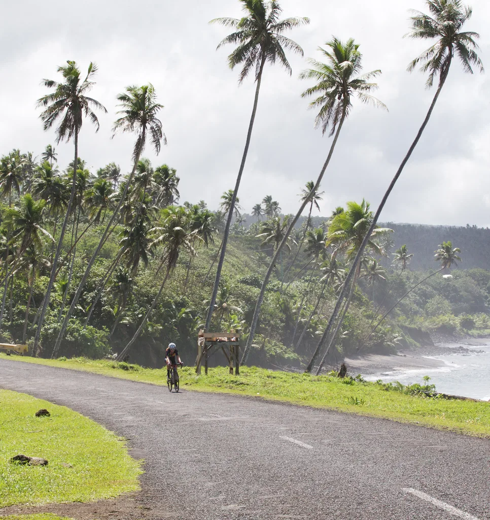 The brief was straightforward – 380 kilometres over six days, circumnavigating Samoa’s two main islands, Upolu and Savai’i, on a road bike.