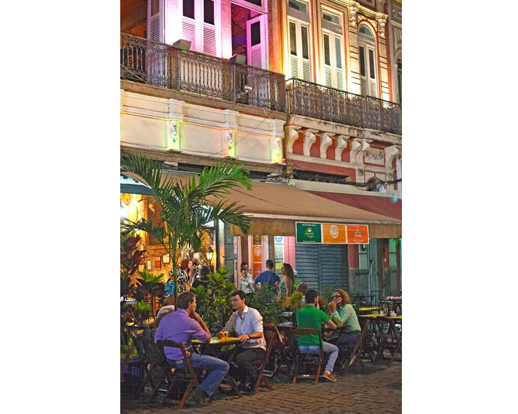 After dark, the area becomes a popular nightspot and, in restaurant Rio Scenarium, we eat a typical Brazilian meal, washed down with caipirinhas – lime, ice, rum and lots of it.