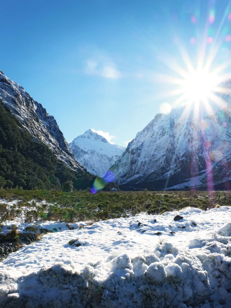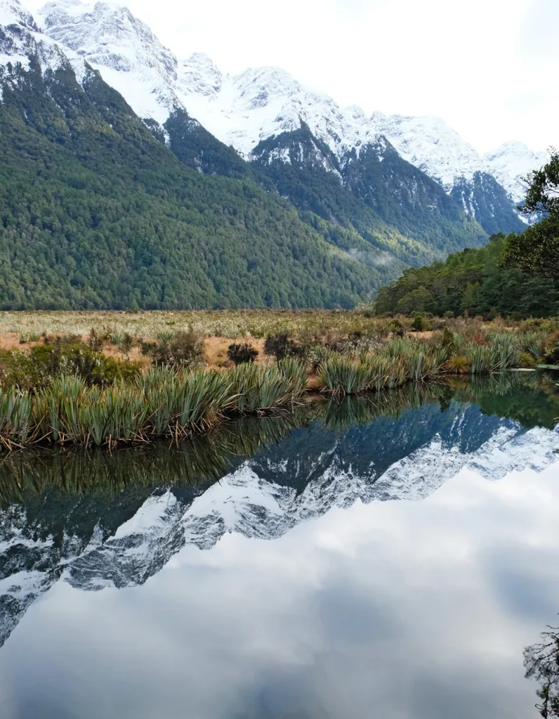 We stop at Te Anau, Eglinton Valley and the rather literally named Mirror Lakes. Curious keas and a layer of snow add to the excitement – winter is a glorious time to visit the area.